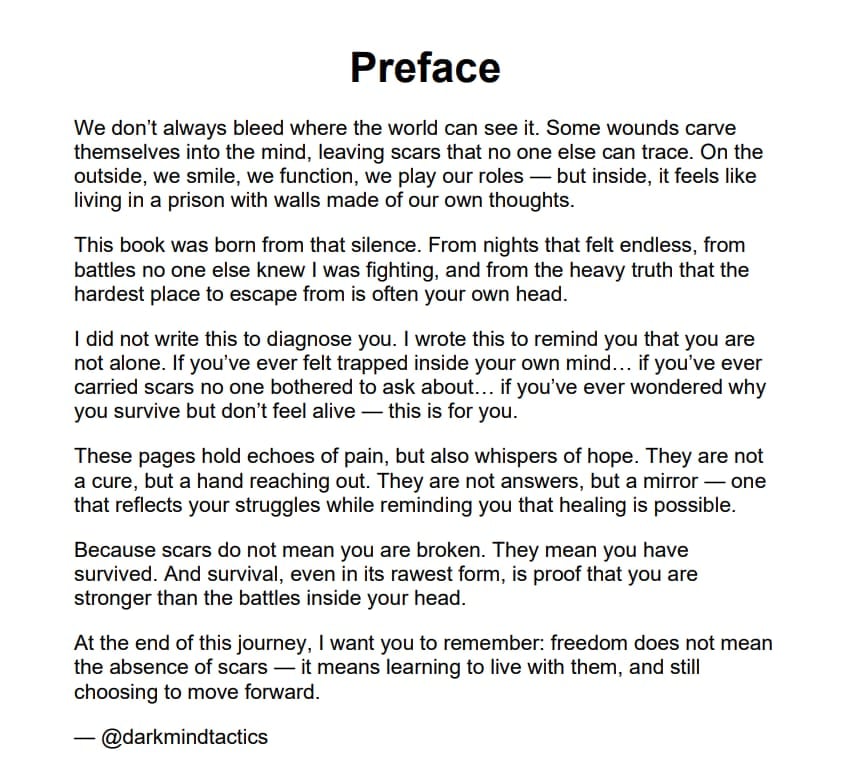 It’s a step-by-step guide to breaking free from the mental chains that keep you trapped. Every chapter is built to transform your thinking, heal your hidden wounds, and teach you the psychology of inner freedom.